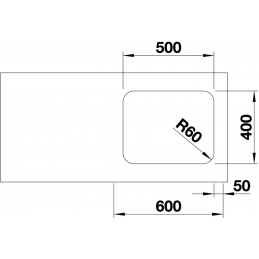 A 500 × 400 mm méretű és 175 mm mély medence (rádiusz R60) elegendő helyet biztosít a nagyobb edények kényelmes mosogatásához is.