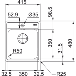 Ennek a mosogatónak az ára tartalmazza a 3 1/2"-os szűrőszelepet túlfolyóval, a 6/4"-os helytakarékos szifont mosogatógépcsappal és a Ø 35 mm-es csapfurattal. Lehetősége van arra is, hogy a mosogatószer-adagolóhoz vagy a szűrőszelep gombba való furatot is rendeljen.
