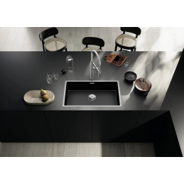 BLANCO CLARON 700-IF Dark Steel egy luxus egymedencés mosogató, amely ötvözi a letisztult, modern dizájnt, a praktikusságot és a prémium minőséget. A sötét rozsdamentes felületnek Dark Steel köszönhetően minden konyha meghatározó esztétikai elemévé válik, elegáns és időtlen hatást keltve.