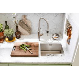 Extra mély medence és kis rádiuszok biztosítják az optimális belső térkihasználást, így a mosogató rendkívül tágas és kényelmes használatot nyújt.