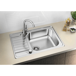 Blanco Dinas XL 6 S Compact egy praktikus és modern rozsdamentes acél konyhai mosogató nagyvonalú medencével és elegáns, időtlen dizájnnal. A 780 × 500 mm méretének és a medence 190 mm mélységének köszönhetően elegendő helyet biztosít még a nagyobb edények és igényesebb konyhai feladatok számára is. Alkalmas legalább 60 cm széles szekrényekhez, és hagyományos munkalapra szereléshez készült.