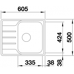 A 605 × 500 mm méretű mosogató munkalapra szereléshez vagy síkba építéshez (IF) készült, és legalább 45 cm széles alsószekrényekhez alkalmas.