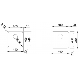 Mosogató mérete: 440 × 440 mm