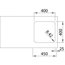 A 400 × 400 mm méretű és 185 mm mély (rádiusz R42) medence kényelmes munkateret biztosít még nagyobb edények kezelésekor is.