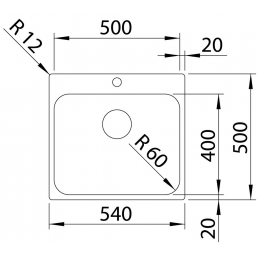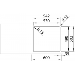 A tágas medence 500 × 400 mm mérettel és 175 mm mélységgel (R60 rádiusz) elegendő helyet biztosít a mindennapi mosogatáshoz.