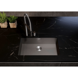 Blanco Zerox 700-U egy modern rozsdamentes acél mosogató minimalista dizájnnal és nagylelkű munkaterülettel. Az alsó beépítésnek és az nullás rádiuszú éles sarkoknak köszönhetően letisztult, építészeti megjelenést kölcsönöz a munkalapnak. A 740 × 440 mm méretű mosogató 80 cm-től széles szekrényekhez készült.