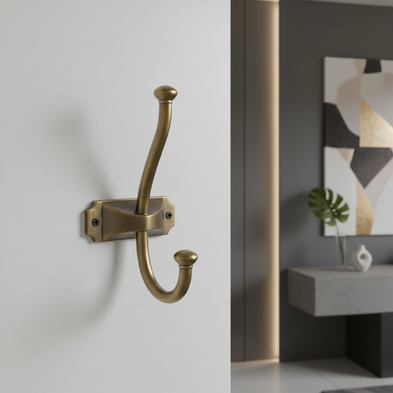 A PORTO akasztó antik sárgaréz kivitelben kiváló választás mindazoknak, akik erős, praktikus és esztétikailag karakteres kiegészítőt keresnek meleg, történelmi hangulattal.