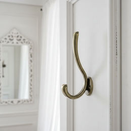 Elegáns bútorakasztó ARLES fényes antikolt sárgaréz felülettel ideális kiegészítő rusztikus, vintage vagy klasszikus enteriőrökbe. Diszkrét formája és minőségi sárgaréz kivitele stílusos és nemes megjelenést kölcsönöz a bútornak vagy ajtónak.