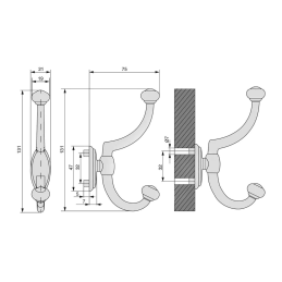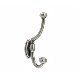 A PLUTO rusztikus fogas elegáns antik ezüst kivitelben praktikus és dekoratív kiegészítő klasszikus és rusztikus hangulatú enteriőrökbe egyaránt. Finoman patinázott ezüst felülete autentikus megjelenést kölcsönöz a fogasnak, és kiemeli időtlen dizájnját a két akasztóval.