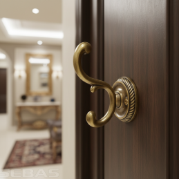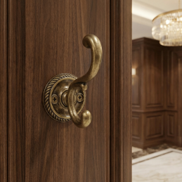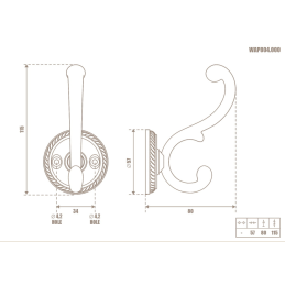 A GALILEO rusztikus fogas antik sárgaréz kivitelben elegáns és funkcionális kiegészítő klasszikus és rusztikus enteriőrökbe. Gazdagon formázott, dupla akasztó dekoratív, kör alakú rozettával kombinálva hagyományos jelleget és magas esztétikai értéket kölcsönöz a fogasnak.