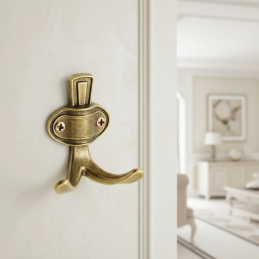 A antik arany színű kivitel elegáns, történelmi megjelenést kölcsönöz a fogasnak, amely szépen kiegészíti a fa bútorokat és a rusztikus enteriőröket.