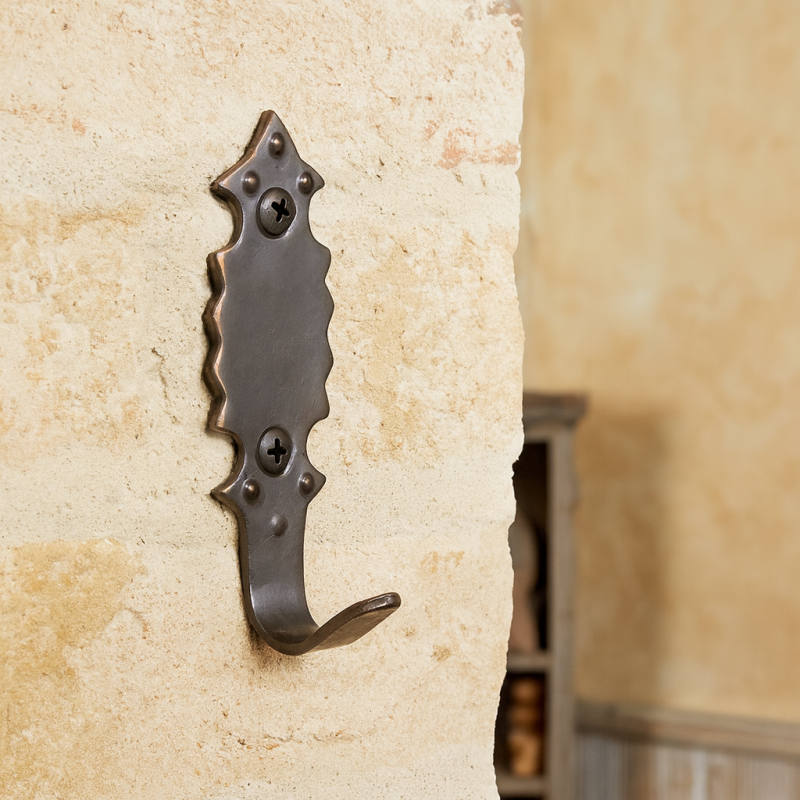 Stílusos rusztikus bútorakasztó sárgaréz kivitelben, amely elegáns és történelmi hangulatot kölcsönöz minden enteriőrnek. Ideális stílusos bútorokhoz, ajtókhoz, szekrényekhez vagy falakhoz klasszikus vagy vintage jellegű belső terekben.