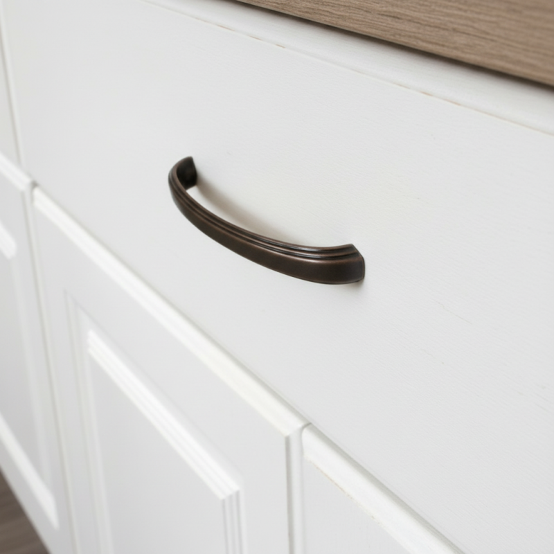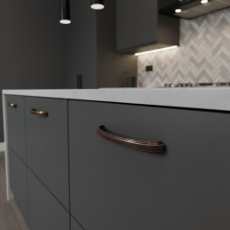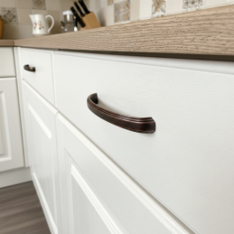 Klasszikus fém fogantyú elegáns profilozással és réz patina felülettel. Különösen alkalmas rusztikus, vidéki vagy retro bútorokhoz. Az időtlen dizájn és a minőségi kidolgozás hosszú élettartamot garantál még mindennapos használat mellett is.