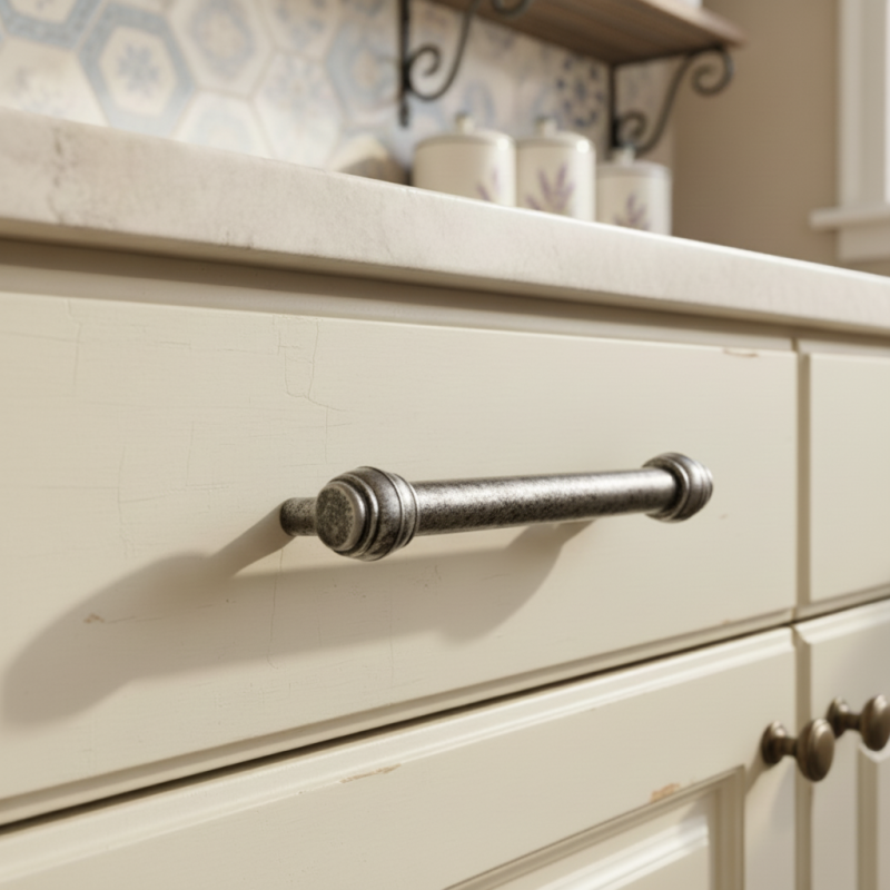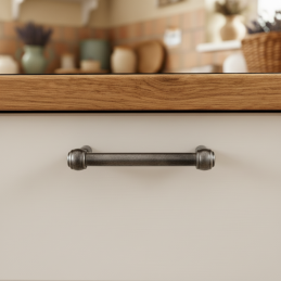 A RUSTICALE fogantyú antik ezüst felülettel eleganciát és nemességet kölcsönöz a belső térnek, finom vintage karakterrel. Masszív fém teste és lekerekített végei hangsúlyossá, mégis visszafogottá teszik – ideális klasszikus, ipari és vidéki enteriőr stílusokhoz.