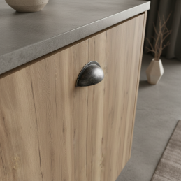 A ZENA fogantyú antik ezüst kivitelben egy ikonikus kagylófogantyú, amelyet olyan enteriőrökbe terveztek, amelyek ötvözik a rusztikus, ipari vagy vintage stílust. Félköríves formája időtlen és rendkívül praktikus is – kényelmes fogást biztosít a fiókok és ajtók nyitásakor. Az antik ezüst felület enyhén patinás hatást kelt, amely autentikus megjelenést kölcsönöz és egyedi karaktert ad a bútornak.