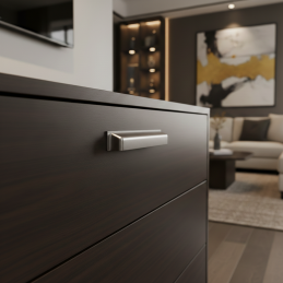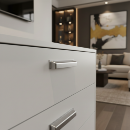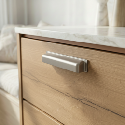 A süllyesztett forma és az ergonomikus profil kényelmes fogást biztosít, miközben megőrzi a bútor minimalista megjelenését.