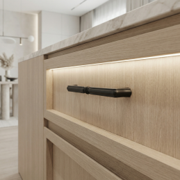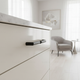 A matt fekete felület hangsúlyos, ugyanakkor ízléses akcentust ad a bútornak. A fogantyú kiváló minőségű fémből készült, ami garantálja a szilárdságot, stabilitást és a hosszú élettartamot mindennapos használat mellett.