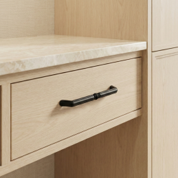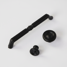 Az elegáns BELAGIO bútorfogantyú matt fekete kivitelben klasszikus formájával és finom dekoratív középső elemével hívja fel magára a figyelmet. Időtlen dizájnjának köszönhetően modern és hagyományos enteriőrökbe egyaránt illik – konyhákba, komódokra, szekrényekre vagy fürdőszobabútorokra.