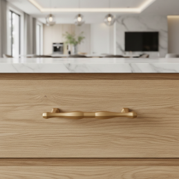 A stílusos RUNA fogantyú elegáns rózsaarany kivitelben finom, luxusos hangsúlyt kölcsönöz a bútornak. Finoman formázott profilja dekoratív részletekkel harmonikus és időtlen hatást kelt, így modern és klasszikus enteriőrökbe egyaránt illik.