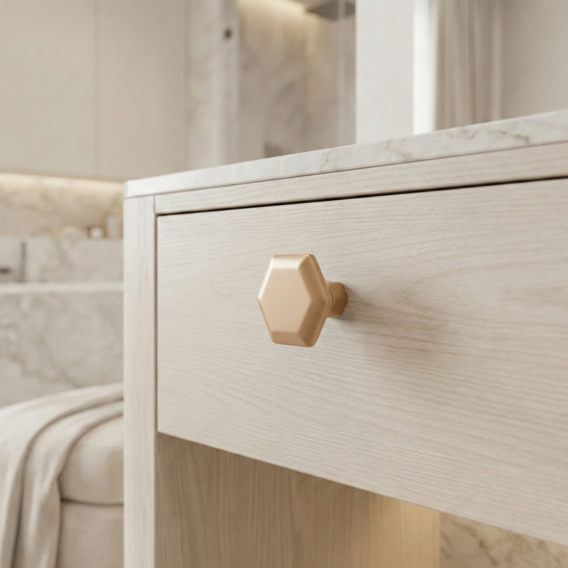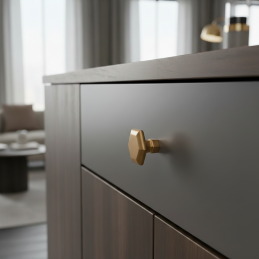 A RUNA stílusos gomb rózsaarany kivitelben finom eleganciát és luxus akcentust visz a belső térbe. A dekoratív forma finom részletekkel kifinomult hatást kelt, és ideális modern és glamour enteriőrökbe is.