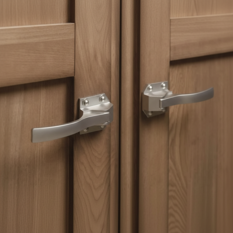 A fogantyú kombinálható azonos dizájnú zsanérokkal is, hogy egységes és harmonikus megjelenést biztosítson a bútornak.