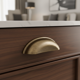 A DIAMO fogantyú antik sárgaréz kivitelben ideális választás olyan enteriőrökbe, ahol fontos a részletgazdagság, a hagyomány és a rusztikus karakter.