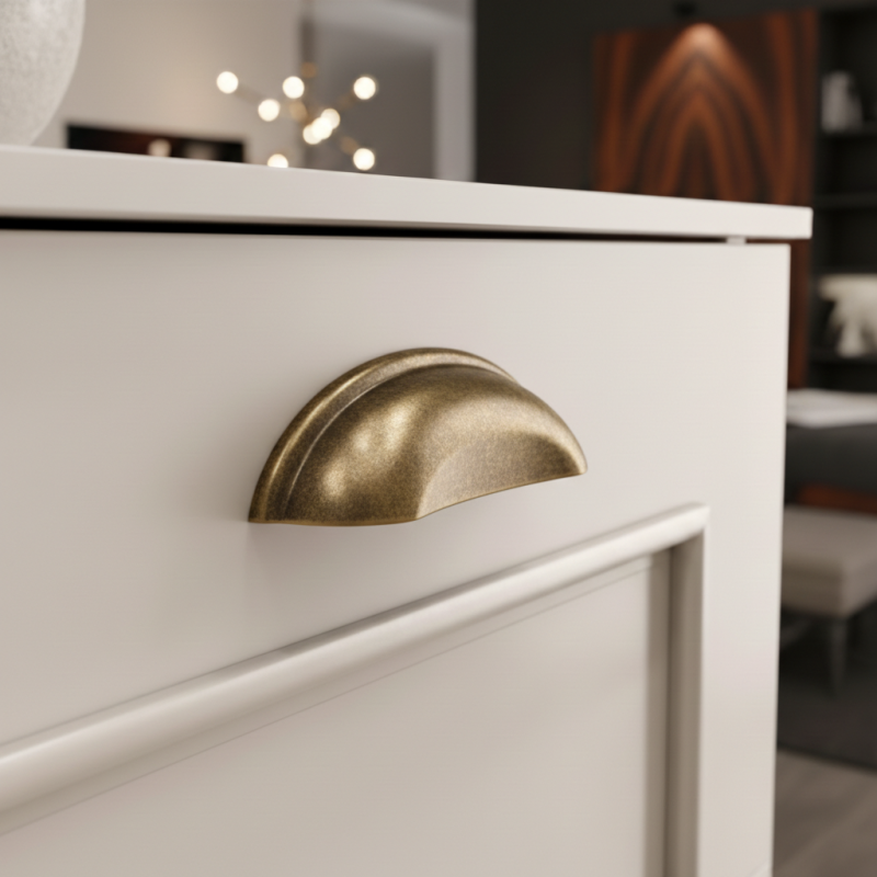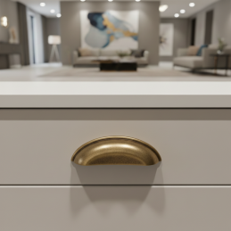Az elegáns DIAMO bútorfogantyú klasszikus kagyló formában alkalmas konyhákba, komódokba, fiókokba és rusztikus hangulatú bútorokhoz is. Finoman lekerekített vonalai és dekoratív széle hagyományos és időtlen megjelenést kölcsönöz a bútornak.