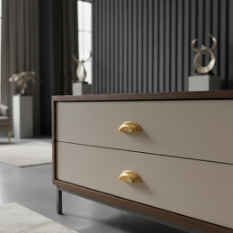 A DIAMO fogantyú matt arany kivitelben ideális választás olyan enteriőrökbe, ahol az elegancia, a finom fény és az időtlen dizájn találkozik.