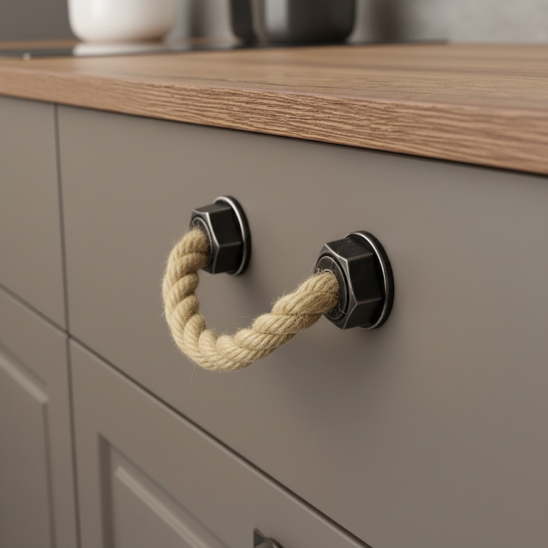 Ez a kombináció egyedi kézműves hatást kelt, amely gyönyörűen kiegészíti a vidéki konyhákat, nyaralókat, komódokat vagy az ipari stílusú bútorokat.