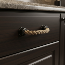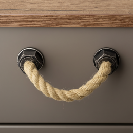 A SPACCATA fogantyú antik fekete felülettel a masszív fonott kötélfogantyút dekoratív műanyag végzárókkal ötvözi. A rusztikus megjelenés ellenére a végzárók vizuálisan fémszerűek, de a műanyag anyagnak köszönhetően könnyebbek, nem rozsdásodnak, és nedvesebb helyiségekbe is alkalmasak.