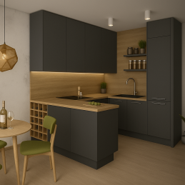 Ez a kifinomult, mély szürke tónus finom bársonyos hatással luxusos és időtlen karaktert kölcsönöz a térnek. Az antibakteriális felületkezelésnek és az ujjlenyomat-álló felületnek köszönhetően ezek az ajtófrontok nemcsak szépek, hanem rendkívül praktikusak is.