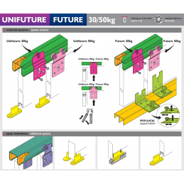 A felső sín toló rendszerekhez készült UNIFUTURE és FUTURE. Kiváló minőségű alumíniumból készült, amely magas szilárdságot, stabilitást és hosszú élettartamot biztosít mindennapi használat mellett.