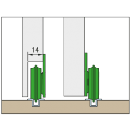 A műanyag vezető stabilan tartja a tolóajtót, és megakadályozza, hogy mozgatás közben kilengjen az irányból. Univerzális kialakításának köszönhetően kétféleképpen használható - vagy az ajtó alján lévő horonyba helyezik be, vagy két, egymással szemben, az ajtók között elhelyezett vezetőt használnak. A beszerelés nagyon rugalmas - a vezetőt lehet csavarozni...