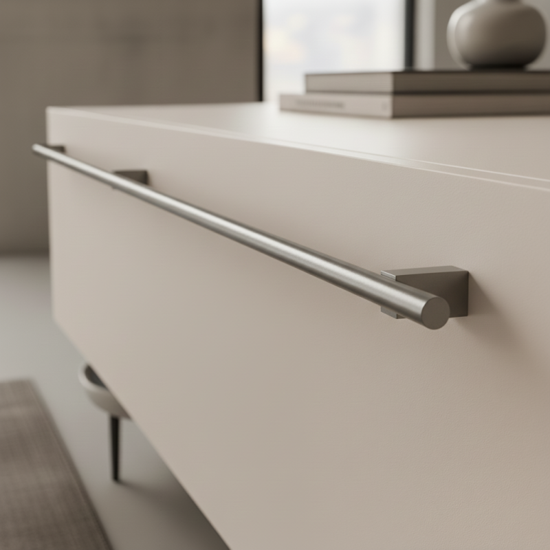 A GUANA fogantyú matt króm kivitelben elegáns fémes megjelenést ötvöz minimalista formával. Modern, letisztult és univerzális hatást kelt – tökéletesen illik világos és sötét bútor dekorokhoz is. Rendkívül karcsú profiljának köszönhetően különösen kifinomultnak tűnik, és ideális választás gardróbszekrényekhez, beépített szekrényekhez vagy magas konyhai ajtókhoz.
