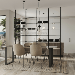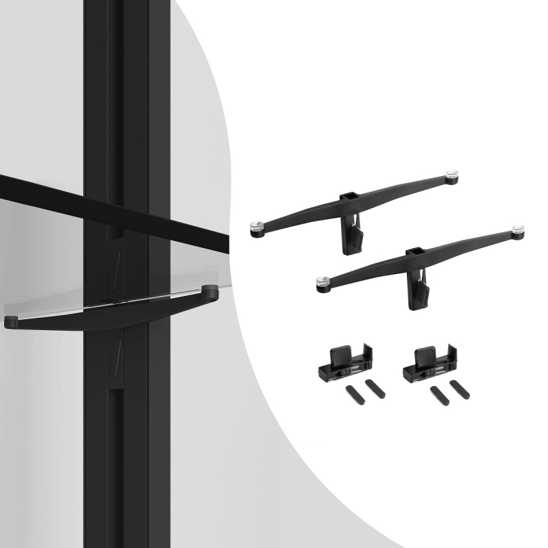 Fogantyúkészlet legfeljebb 16 mm vastagságú üvegpolcokhoz. A maximális terhelés polconként 100 kg