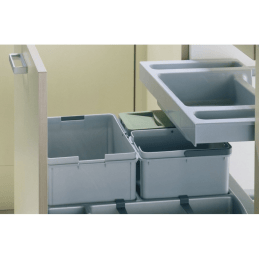 A Franke hulladékgyűjtő egy új generációs hulladékválogató rendszer, amely 60 cm-es alsó szekrényhez alkalmas, három hulladékválogató kosárral 1x fedél a 8 literes kosárhoz a válogató árában benne van.