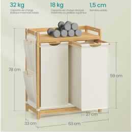 Az elegáns és praktikus SPA HARMONY DUO szennyestartó kosár természetes bambusz vázzal és finom, fehér textilzsákokkal ötvözi a stílust. A dupla kialakításnak köszönhetően a szennyes egyszerűen szétválogatható már a lerakás során.