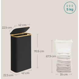 60 literes űrtartalmával és 42 x 22,5 x 70,5 cm-es méreteivel ez a kosár elég nagy ahhoz, hogy egy személy heti szennyesét befogadja. Többé nem kell naponta a szennyest gyűjtenie, mert ez a kosár elegendő helyet és szervezettséget biztosít, amire szüksége van.