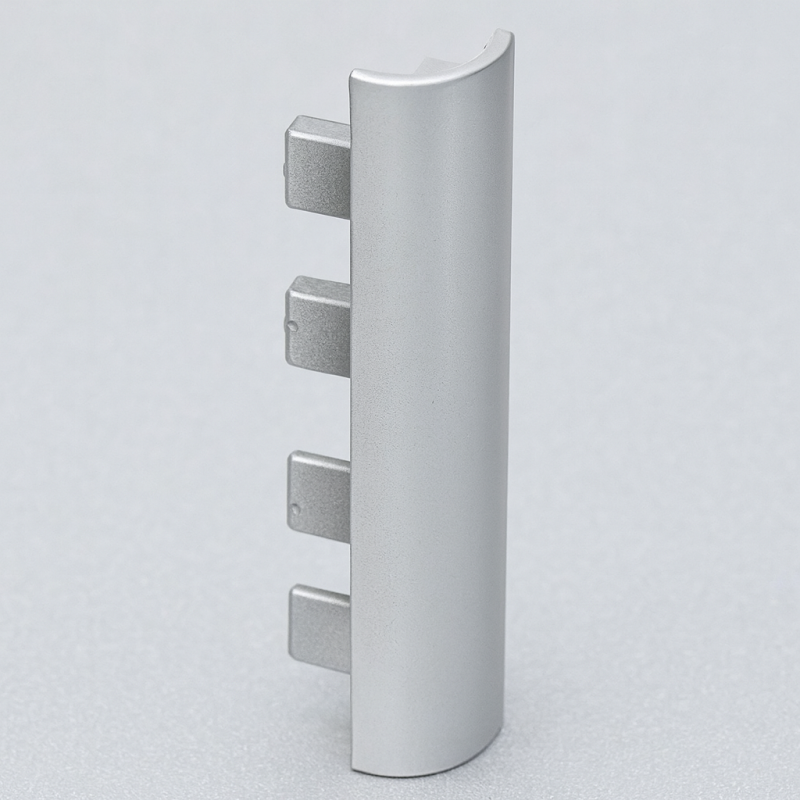 A sarokcsatlakozót a fedősínen használják, ahol 90°-os sarkot hoz létre, és így eltakarja a tolóajtó mechanizmusait.