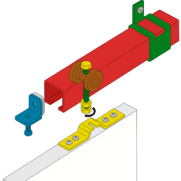 A beszerelés nagyon egyszerű - a féket az ajtó felszerelése után beillesztik a sínbe, majd egy csavarral rögzítik.