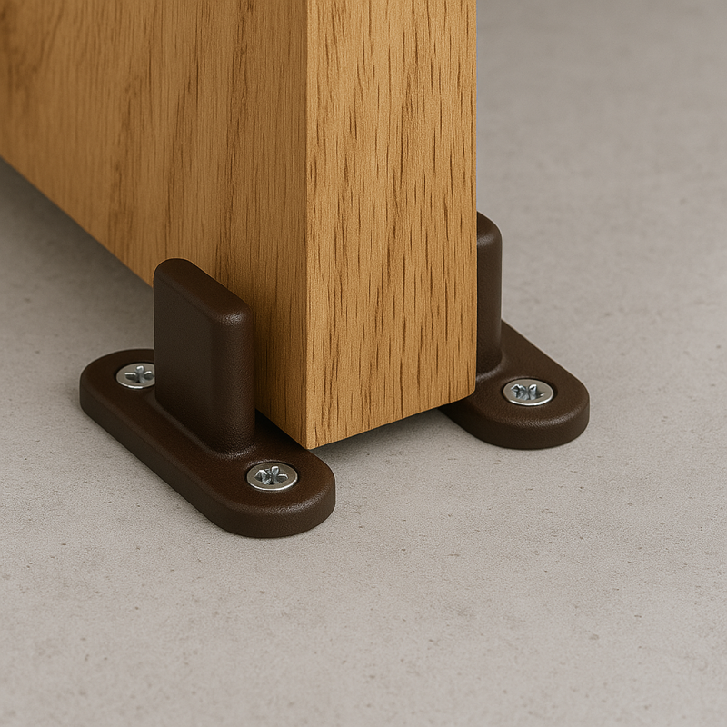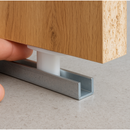 A műanyag vezető stabilan tartja a tolóajtót, és megakadályozza, hogy mozgatás közben kilengjen az irányból. Univerzális kialakításának köszönhetően kétféleképpen használható - vagy az ajtó alján lévő horonyba helyezik be, vagy két, egymással szemben, az ajtók között elhelyezett vezetőt használnak.