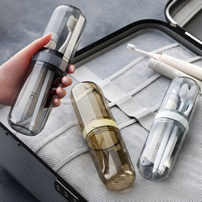 Praktikus és higiénikus utazó tok fogkefe és fogkrém számára ideális megoldás mindenkinek, aki gyakran utazik, vagy szüksége van arra, hogy higiéniai eszközeit biztonságosan egy helyen tárolja. A kompakt 2 az 1-ben kialakítás kényelmes hordozhatóságot, védelmet a szennyeződésektől és egyszerű használatot biztosít.