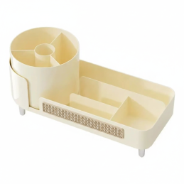Elegáns és praktikus forgó rendszerező MAKEUP finom krémszínű kivitelben ideális megoldás a kozmetikumok, ecsetek és mindennapi beauty kiegészítők átlátható tárolására. A világos, semleges szín tiszta és harmonikus hatást kelt, így a rendszerező könnyen alkalmazkodik bármilyen enteriőrhöz.