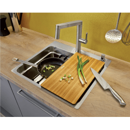 A Blanco márkájú kőris vágódeszka kiváló segítőtárs minden konyhában. Méret: 499x256x41mm. Magasság, szélesség, hosszúság: 24x240x424mm.