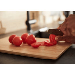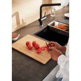 Ez a minőségi vágódeszka kifejezetten a BLANCO Solis mosogatók modelljeihez készült. Tökéletesen illeszkedik a mosogató széleihez, így stabil és kényelmes munkafelületet hoz létre közvetlenül a medence felett. Lehetővé teszi a konyhai tér hatékony kihasználását, és jelentősen megkönnyíti az élelmiszerek előkészítését.