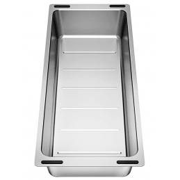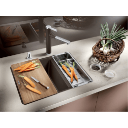 Blanco rozsdamentes acéltál egy praktikus és esztétikus, többcélú tartozék, amely jelentősen bővíti a mosogatótér funkcionalitását. Úgy tervezték, hogy pontosan illeszkedjen a BLANCO márka kiválasztott mosogatótípusaihoz, miközben egységes dizájnt és magas kényelmet biztosít a konyhai munkavégzés során.
