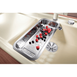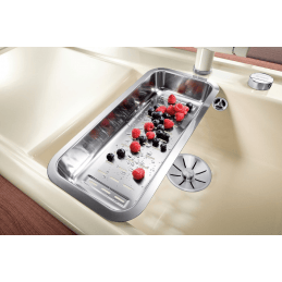 Blanco rozsdamentes acél tál egy esztétikus és praktikus multifunkcionális kiegészítő, amely kibővíti a konyhai mosogató használati lehetőségeit. Úgy tervezték, hogy pontosan illeszkedjen a BLANCO márkájú kiválasztott mosogatótípusokhoz, így biztosítva a stabil elhelyezést, a kényelmes kezelést és az egységes konyhai dizájnt.