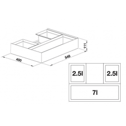A fiók saját sínekkel rendelkezik teljes kihúzással, amelyek közvetlenül a szemetes tartályok felett helyezkednek el.