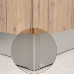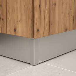 Sarokcsatlakozó csiszolt alumínium dekorban szegélylécek 90°-os szögben történő összekapcsolására szolgál – ideális tiszta, erős és esztétikus konyhai szegélyléc-összekötéshez a sarokban.
