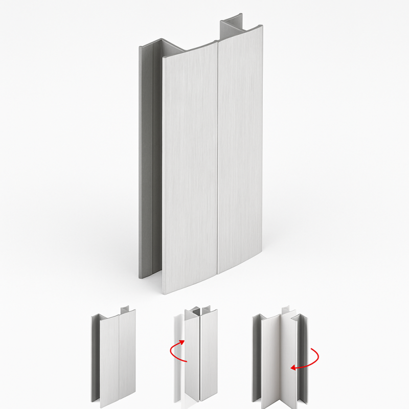 A csatlakozó felülete eredeti csiszolt alumínium dekorfóliával van bevonva, hogy tökéletesen illeszkedjen a PAX szegélyhez azonos árnyalatban.